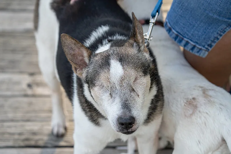 Identifica a tu mascota con una tela, bufanda o chaleco blanco, para que las personas sepan de su condición y puedan acercarse a él con cautela.